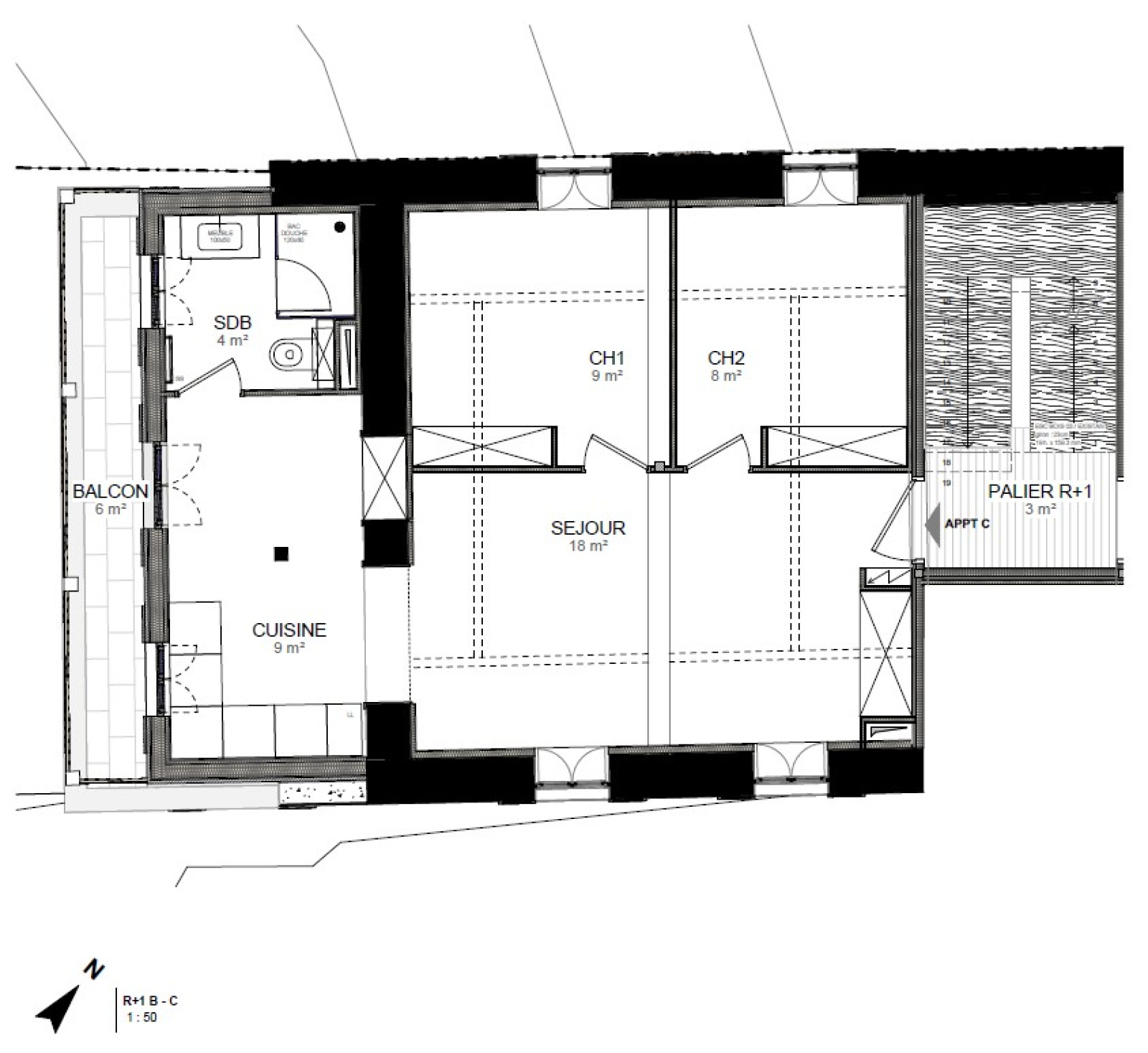 Appartement 3 pièce(s) 2 chambre(s) 48 m²