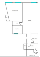 Cet appartement comprend une cuisine aménagée ouverte, une pièce de vie de 21m² exposée SUD, 2 chambres, 1 salle de bains et WC séparés.
