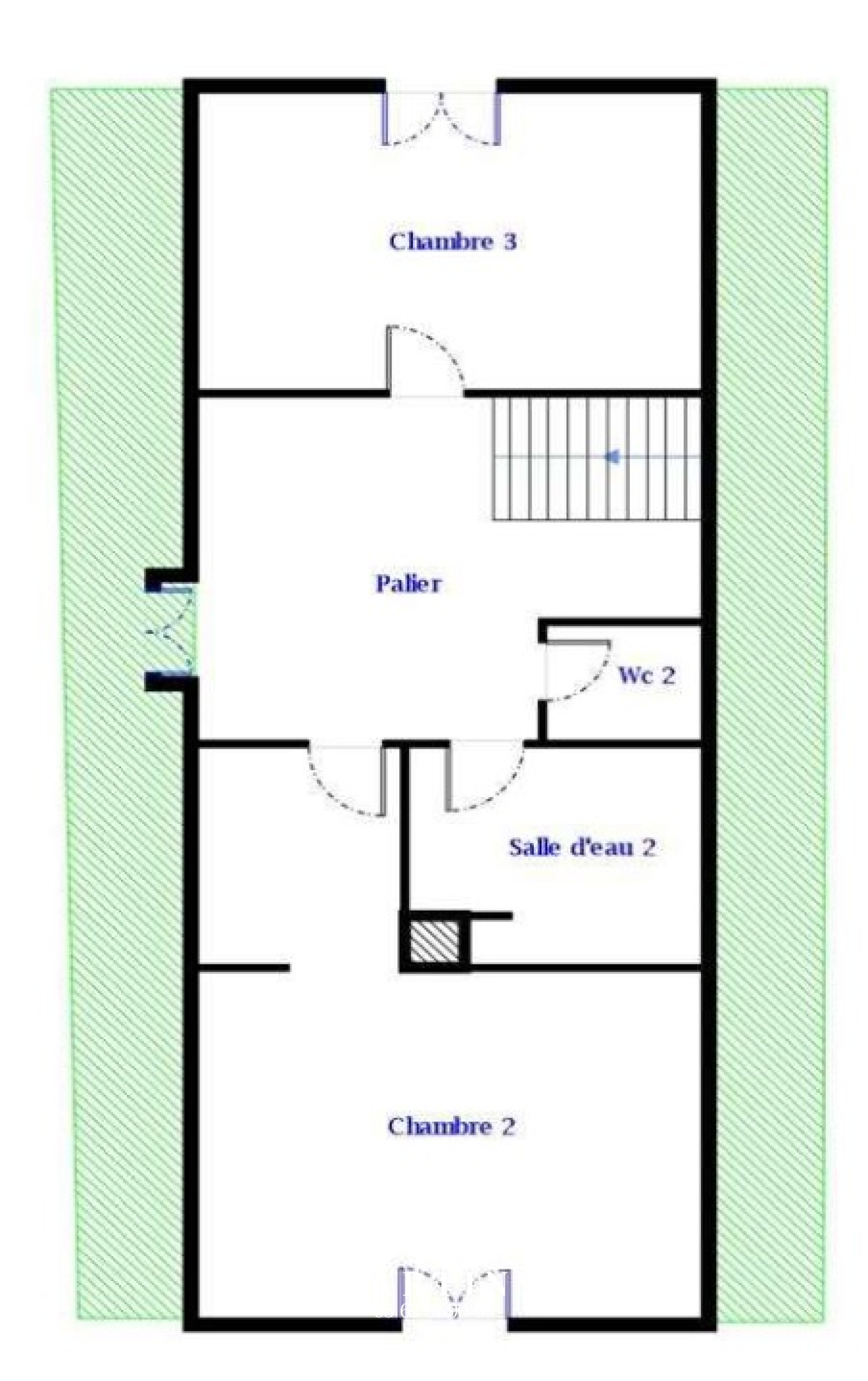 A l'étage : un palier dessert 2 chambres en pignons, une salle d'eau et WC séparés.