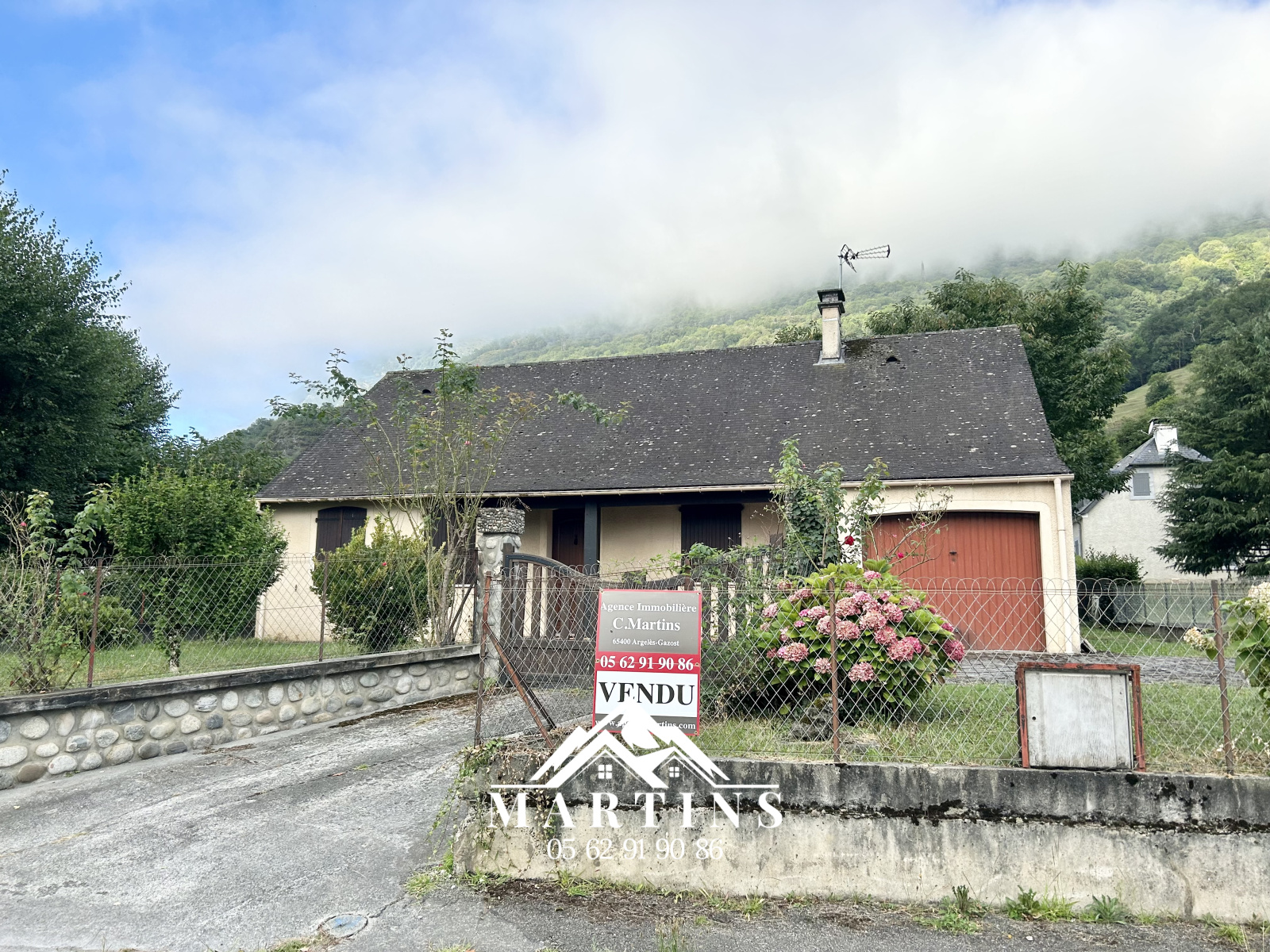 Au cœur d'un village de la vallée des Gaves, à proximité des commerces et écoles, maison des années 1980, construite sur un terrain d’une superficie de 845m² et garage d’environ 29m².