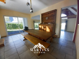 un salon avec grande cheminée/insert, une suite parentale, un bureau et WC.