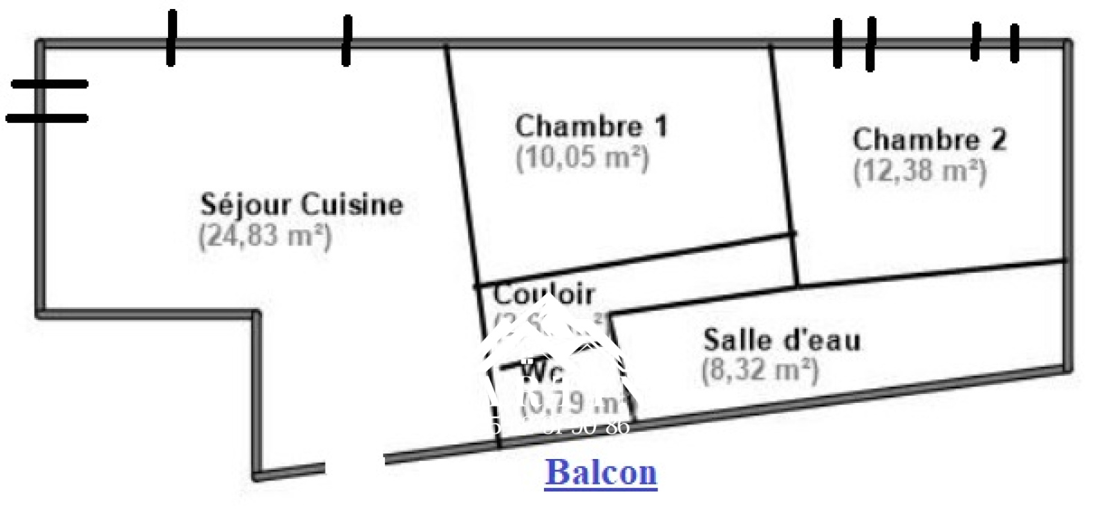 Appartement 3 pièce(s) 2 chambre(s) 59 m²