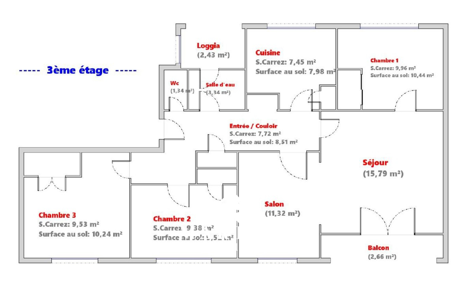 Appartement 4 pièce(s) 3 chambre(s) 75.8 m²