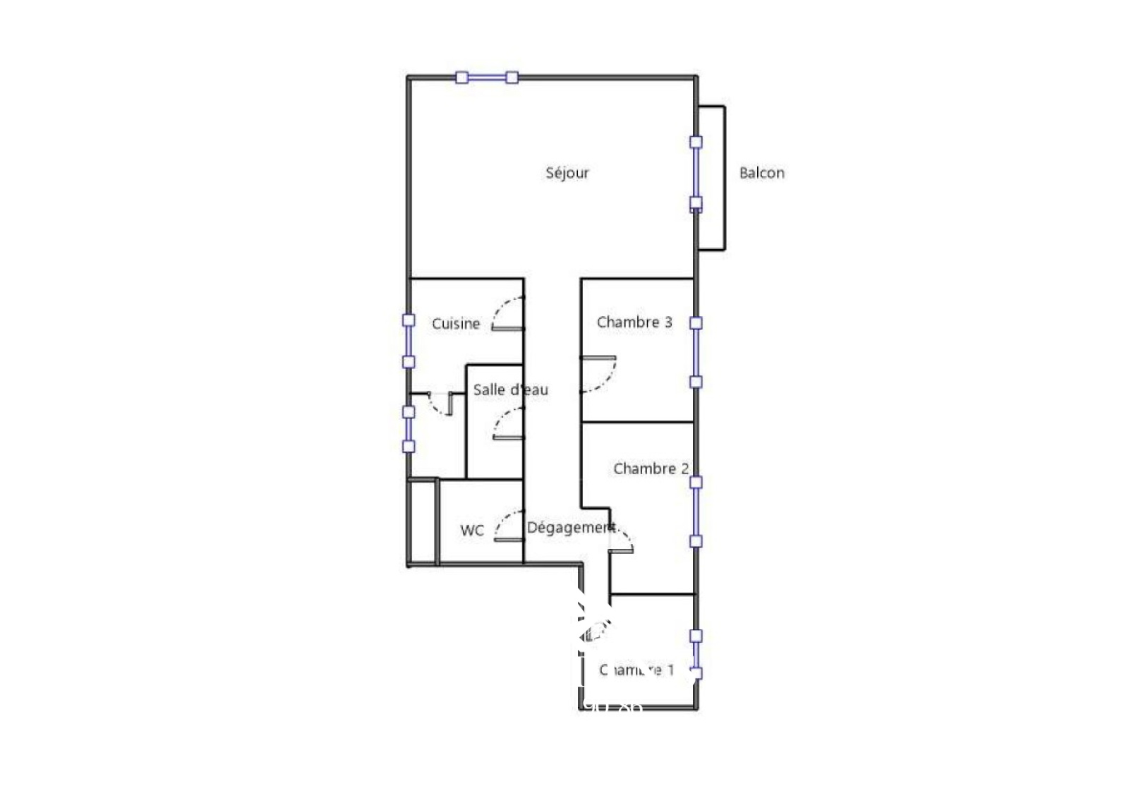 Situé au premier étage de l'immeuble, cet appartement comprend une entrée/couloir qui dessert une pièce de vie ouverte sur balcon, cuisine séparée avec cellier, 3 chambres, une salle d'eau et WC séparés.