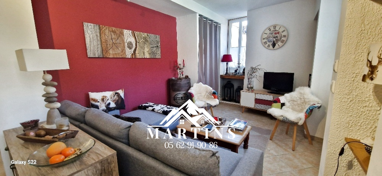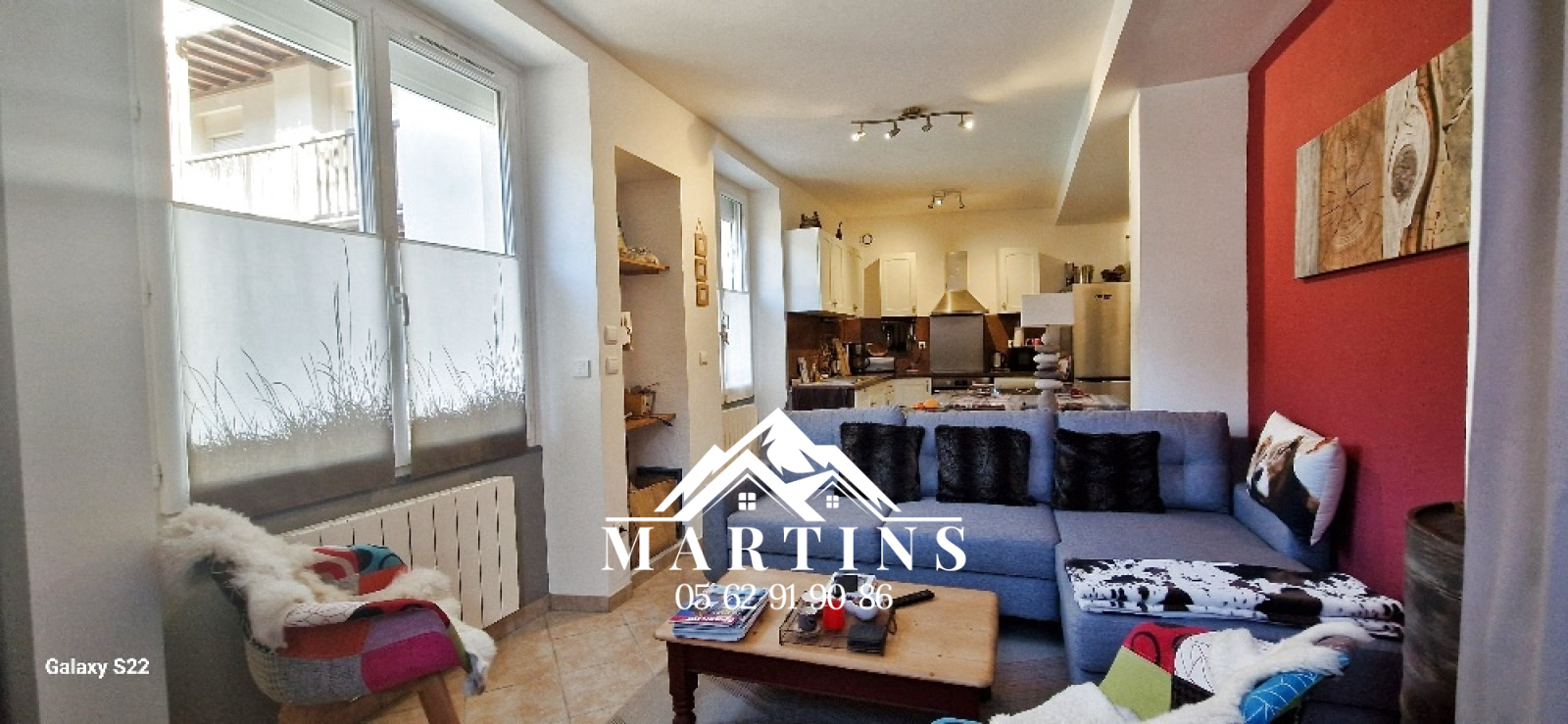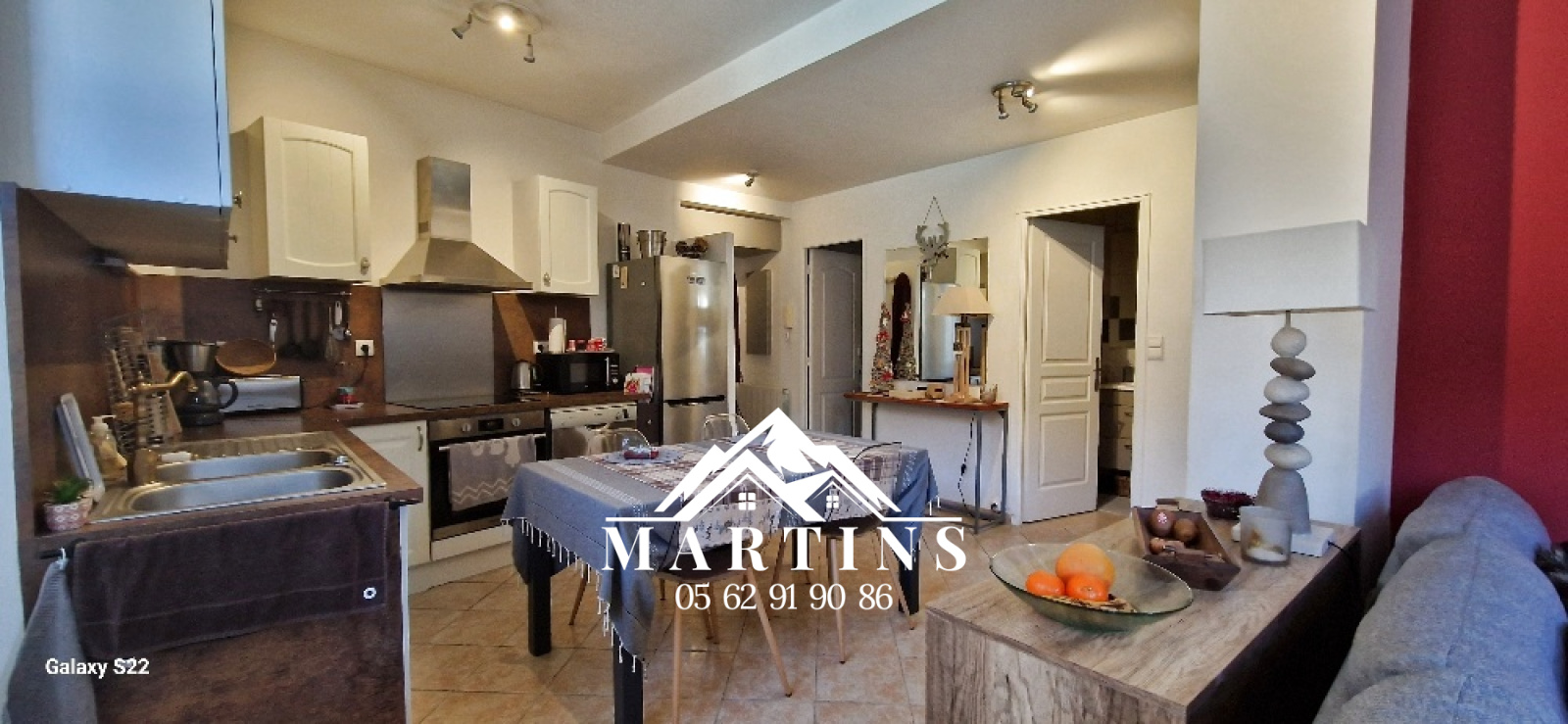 Entrée, pièce de vie avec cuisine aménagée et équipé de 30m², une chambres avec placards, une salle d'eau, WC séparés, et cellier/buanderie.