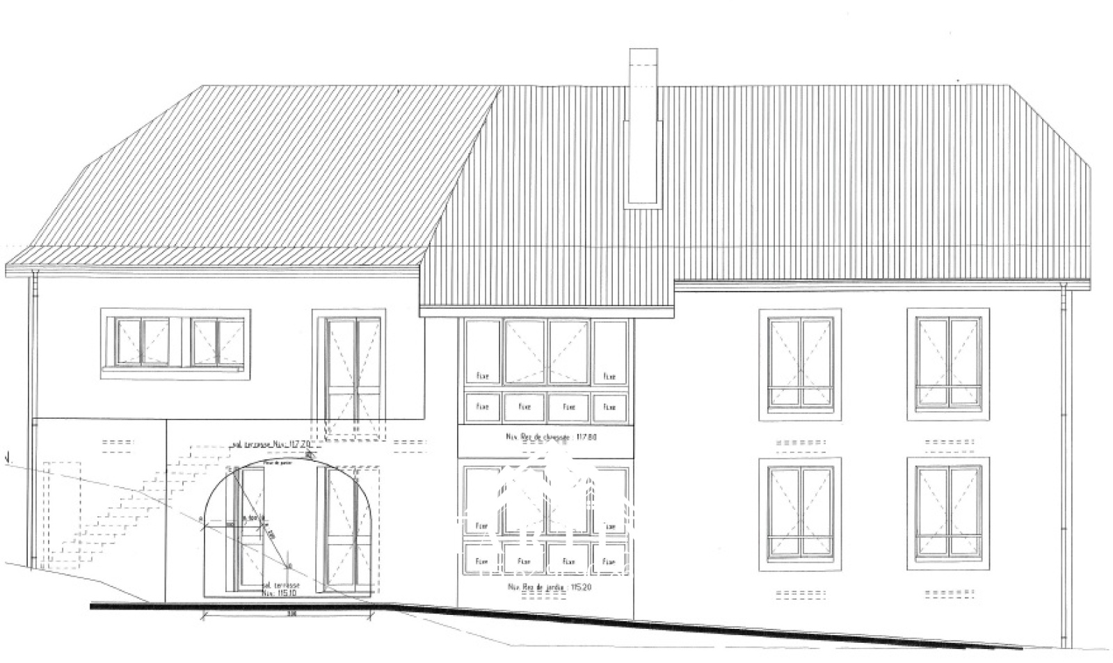Le rez-de-jardin (accès sur jardin et petit ruisseau) dispose d'un second logement de type 3 avec terrasse couverte et cellier.