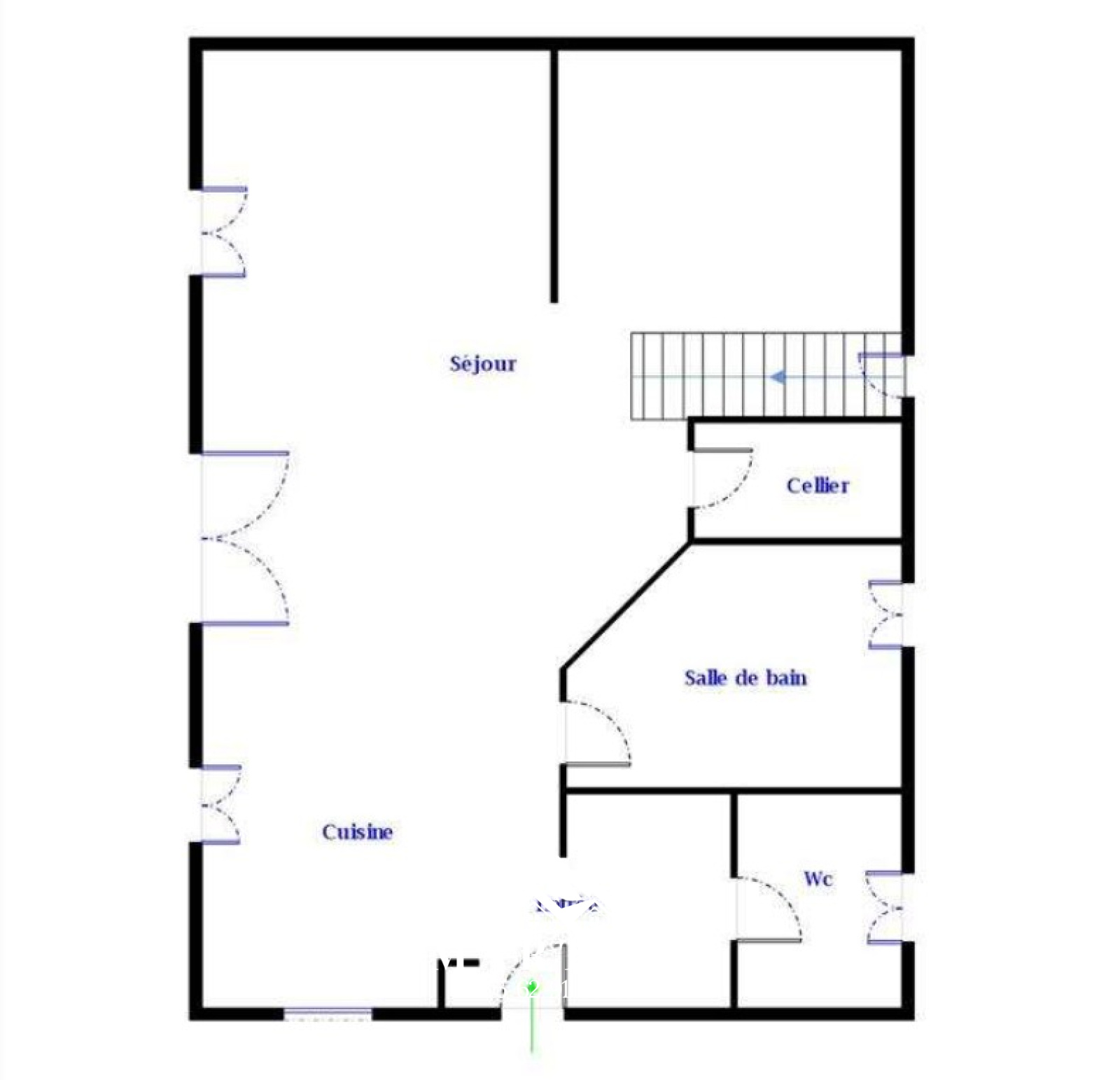 En rez-de-chaussée : une grande pièce de vie de plus de 50m² avec cuisine ouverte aménagée et équipée, salle d'eau, WC séparés, buanderie/cellier (avec la possibilité de créer une chambre).