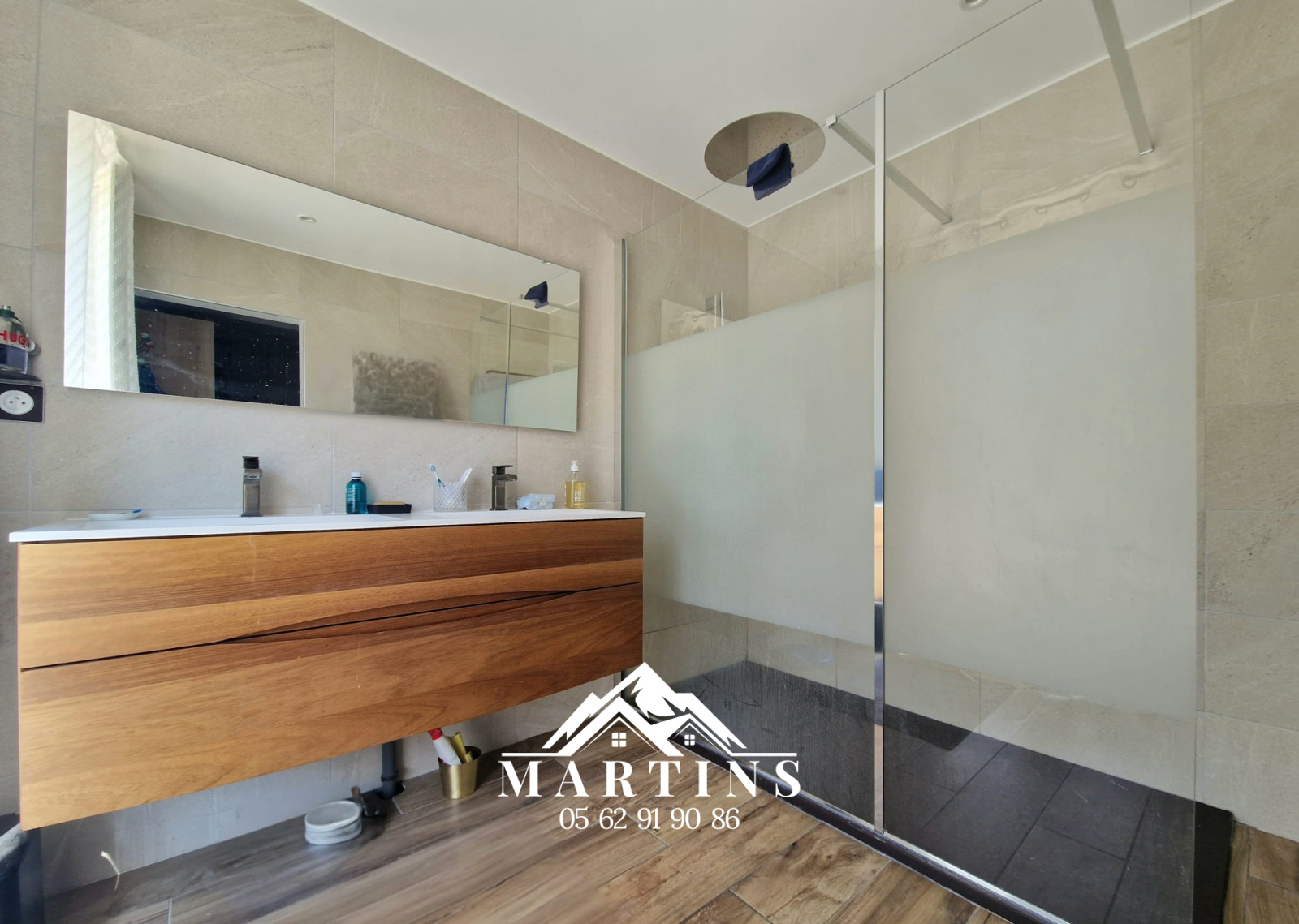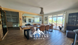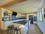 - en rez-de-chaussée : une entrée dessert une très grande pièce de vie avec cheminée centrale et cuisine ouverte équipée donnant accès sur une magnifique terrasse, 1 suite parentale avec salle d'eau, une chambre (avec accès jardin), une salle d'eau/buanderie et WC séparés.
