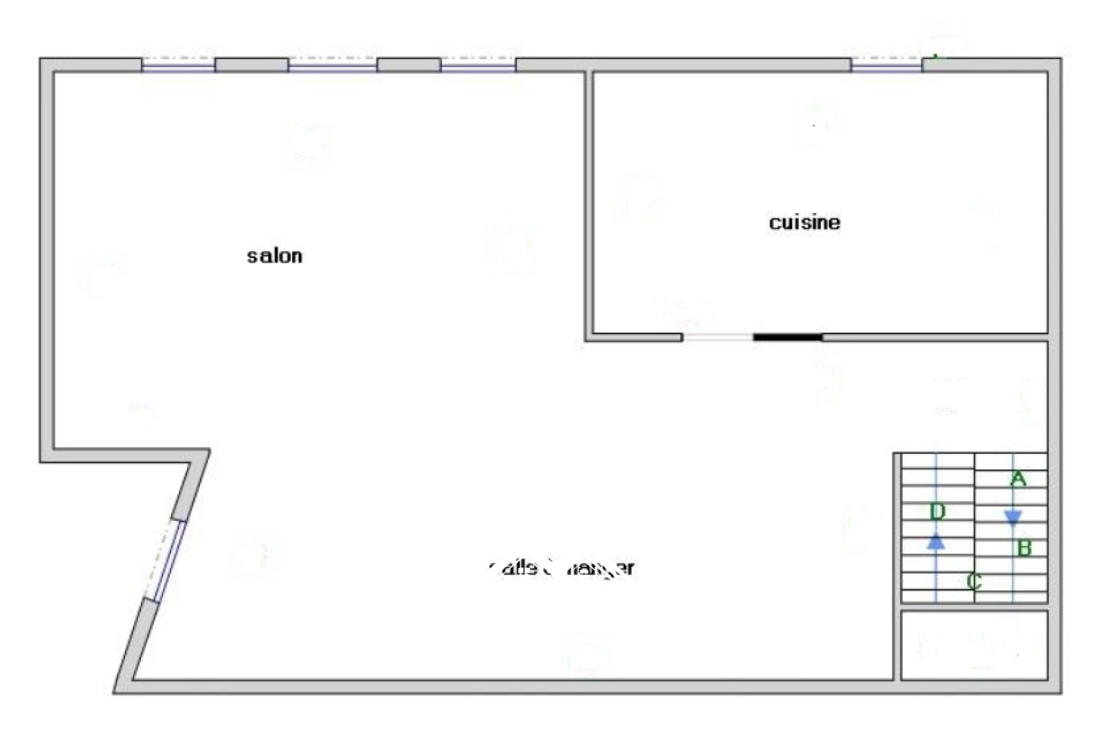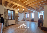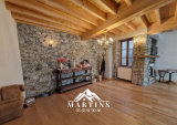 - Au premier étage : salon / pièce de vie avec pierres apparentes et cuisine séparée aménagée.