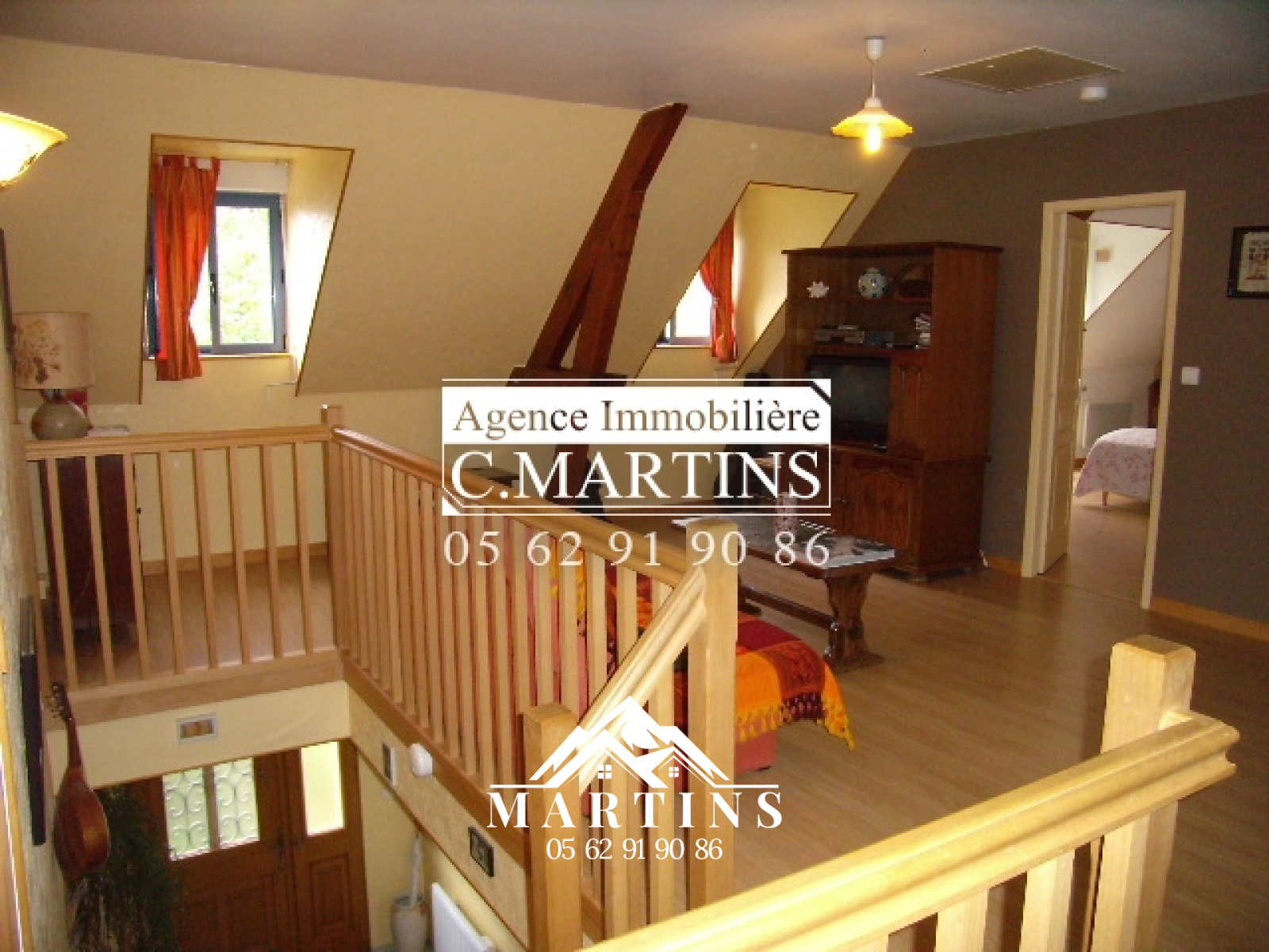 A l'étage : 3 grandes chambres avec placards, 1 mezzanine, une salle de bains, WC et un bureau.