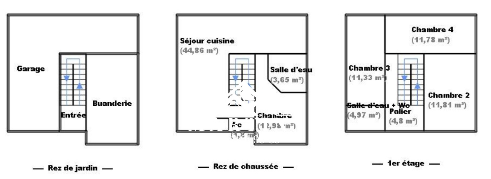 Au dernier niveau, un palier dessert 3 chambres + une salle d'eau avec WC.