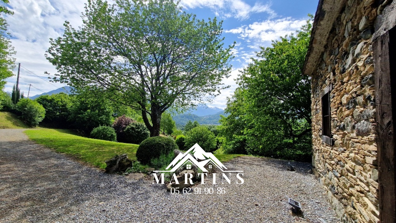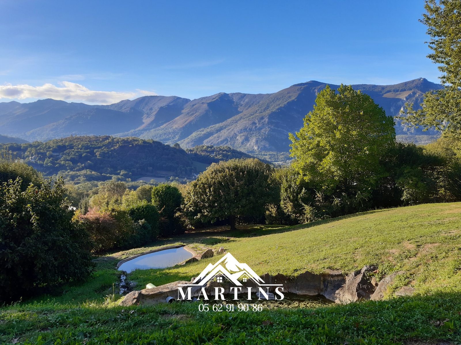 Nombreux petits murets, chemin d'accès éclairé, cours d'eau avec bassins, nombreux arbres permettant une intimité complète !!