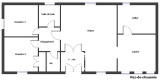 En rez-de-chaussée : un séjour/salle de à manger de 40m², cuisine séparée, buanderie, 2 chambres, salle de bains et WC séparés.
