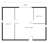 Il dispose d'un coin cuisine ouvert sur pièce de vie, petit coin nuit, salle d'eau avec WC,