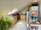 Au 3ème et dernier étage de l'immeuble, cet appartement mansardé est composé d'une pièce de vie avec cuisine ouverte, 2 chambres, un coin bureau, une salle de bains avec WC, et second WC séparé.